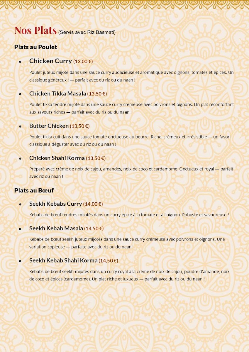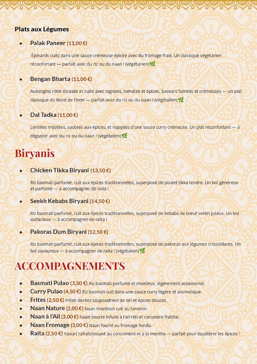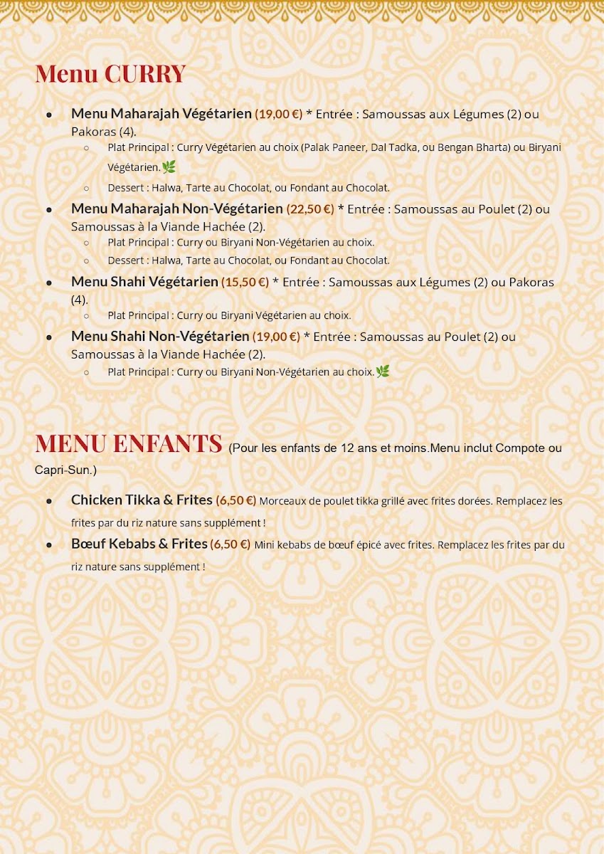 Shahi Tandoori – Cuisine Indienne & Pakistanaise Menu